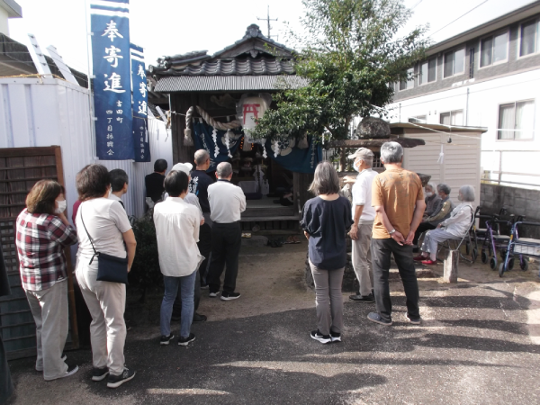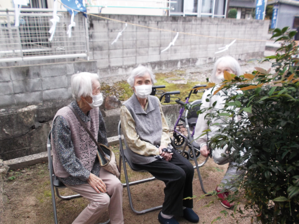 10月12日(日)、施設を代表して3名の入居者様が、吉田・楽々苑に隣接する吉田荒神社で行われた恒例の秋祭りに参加されました。 可愛らしい子ども神輿の町内巡行に続き、厳かな雰囲気の中で神事が執り行われました。 参加された入居者様は奉納酒を献上し、施設の皆様の無病息災を祈願されました。 そして最後には、入居者様がリーダーとなり、日頃の歌会での練習成果を発揮して、唱歌「村祭り」を地域の皆さんと元気いっぱいに合唱されました。 笑顔と歌声に包まれ、今年も和やかな雰囲気の中で秋祭りは無事に終了しました。