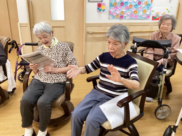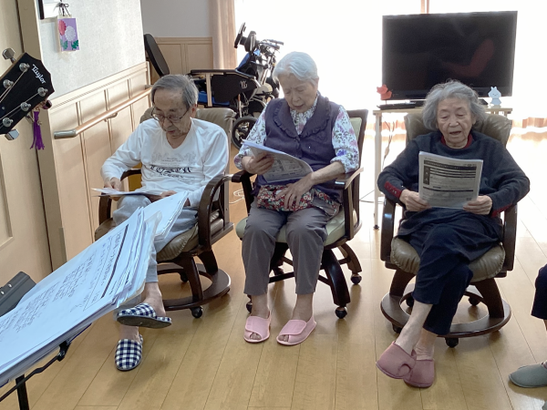 グループホーム井口・楽々苑では9月も音楽ボランティアの方をお迎えし、 懐かしい曲や季節の歌を披露していただき、素敵な歌の時間を過ごしました。