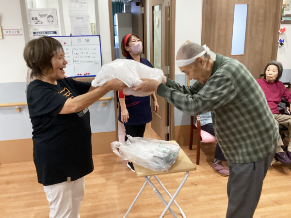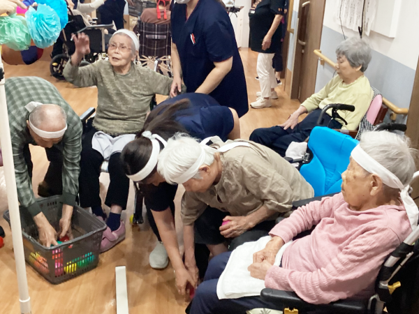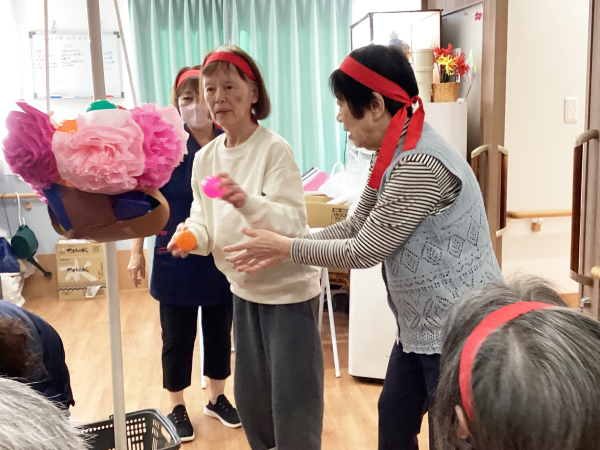 選手宣誓を皮切りに、玉入れ、くす玉割り、スプーンリレー、借り物競争など、皆で力を合わせて楽しみました。