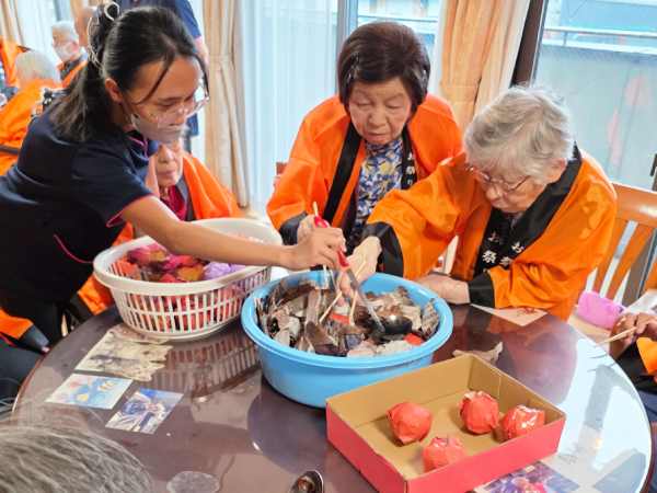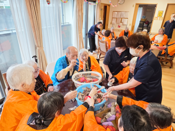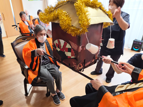 夏が終わり、すっかり秋の気配が感じられるようになりました! どうやら、年間を通して「秋が好き」という日本人が一番多いようです(‘ω’)ノ 今年も事業所では、秋祭りを開催し「わっしょい!わっしょい!」の掛け声と共に、お神輿を担いでいただきました。毎年、オリジナリティあふれるお神輿をスタッフが一から準備しています。 レクリエーションでは、ボールを栗に見立てた「栗拾いゲーム」を楽しみました。 秋といえば、栗・さつまいも・秋刀魚・松茸……。 食欲の秋でもありますが、スタッフ同様、ご利用者様の体重管理もしっかりと行ってまいります(´艸`*)