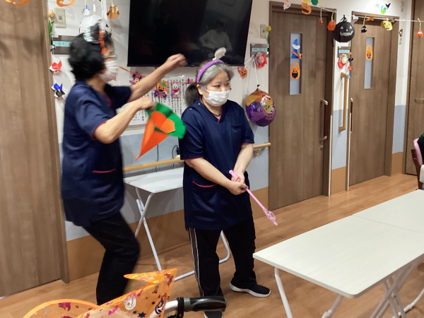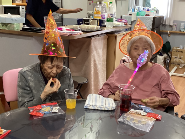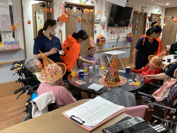 10月31日、外は雨模様でしたが、令和の杜ではハロウィンパーティーで気分は晴れやかでした♪ 帽子や眼鏡、カチューシャで思い思いに仮装し、ビンゴゲームやポキポキダンスで大盛り上がり! 笑顔があふれる楽しい時間のあとは、お待ちかねのお菓子タイム。 甘いおやつを囲んで、心も体もぽかぽかになった一日でした。