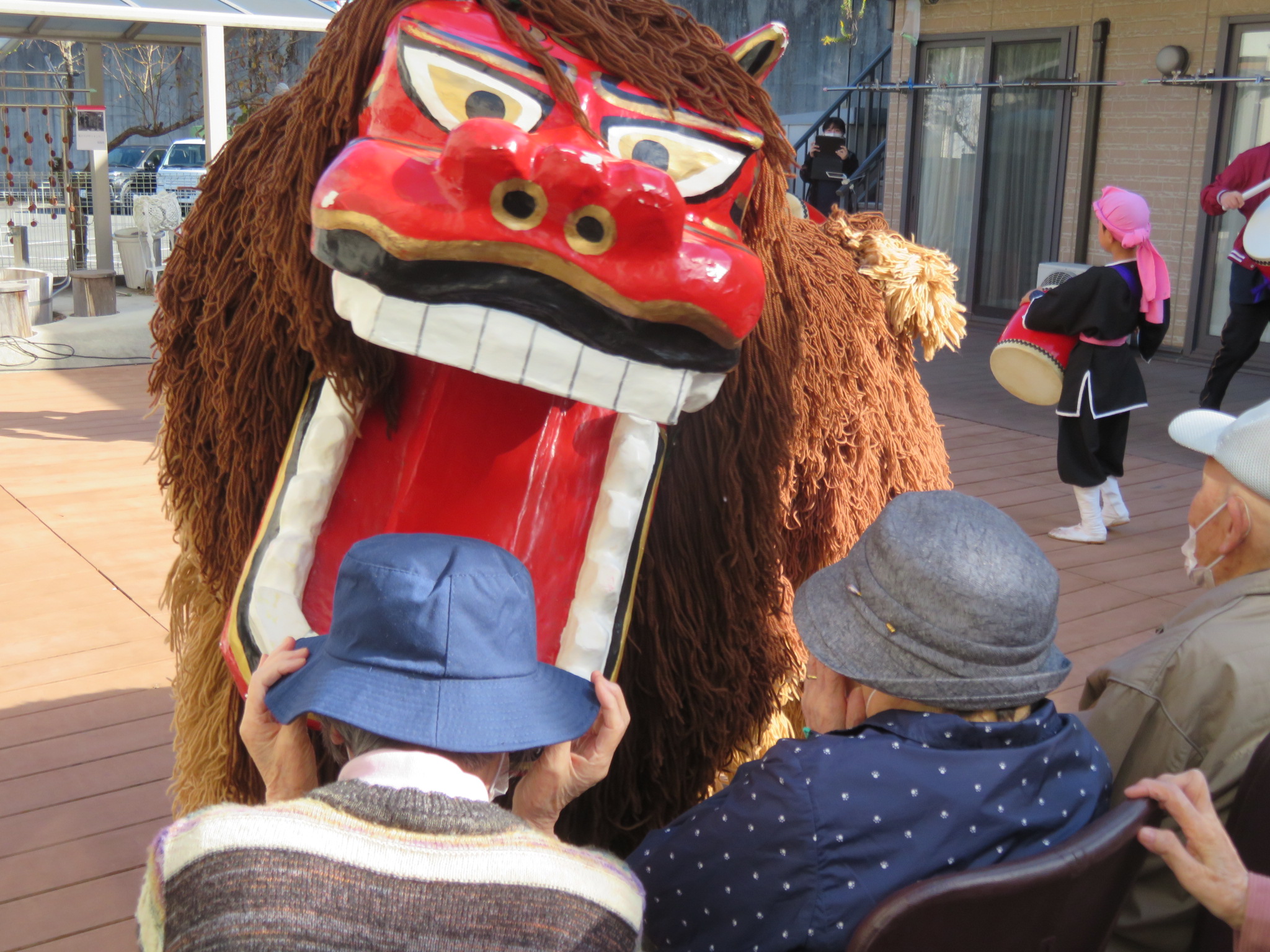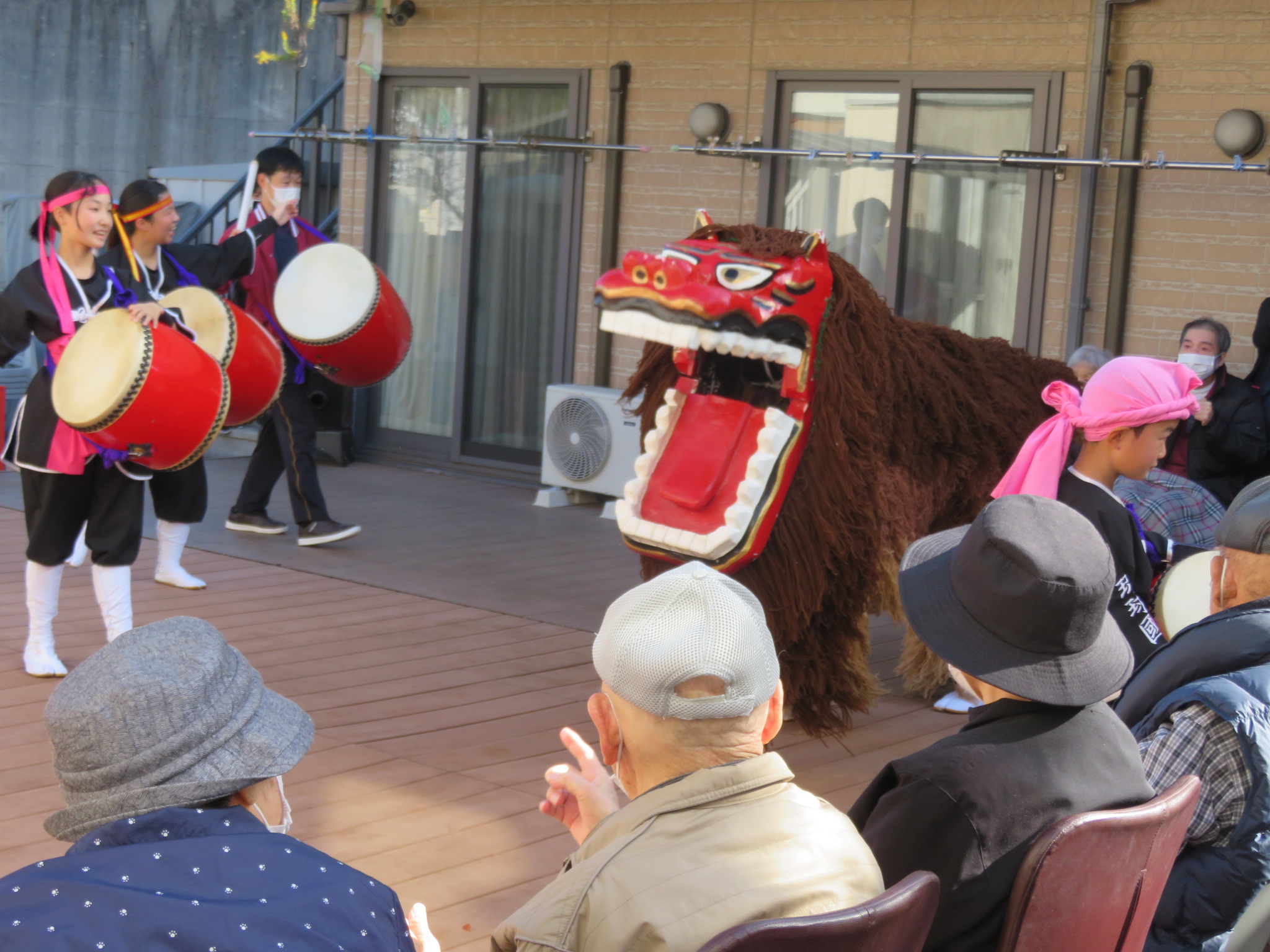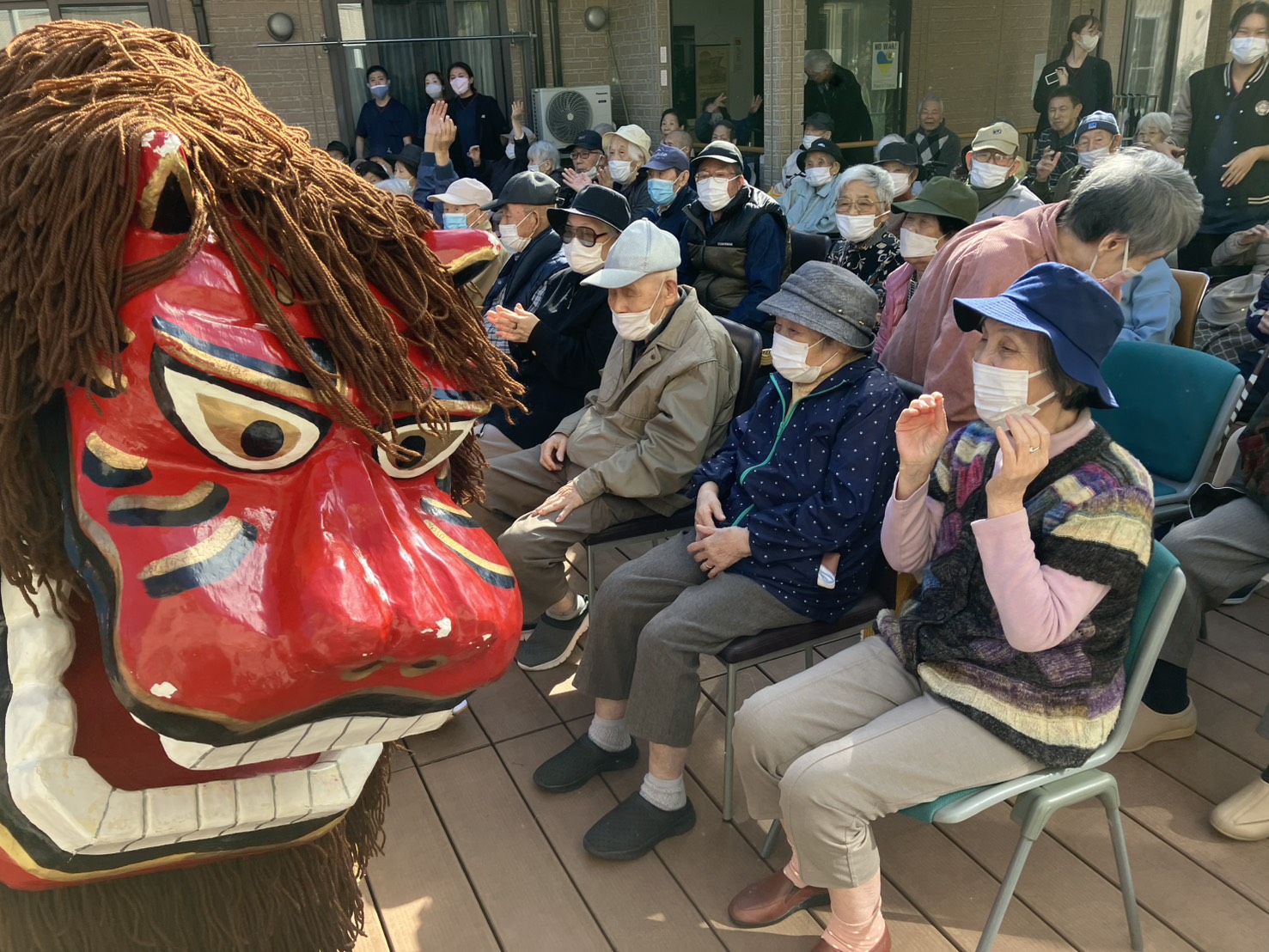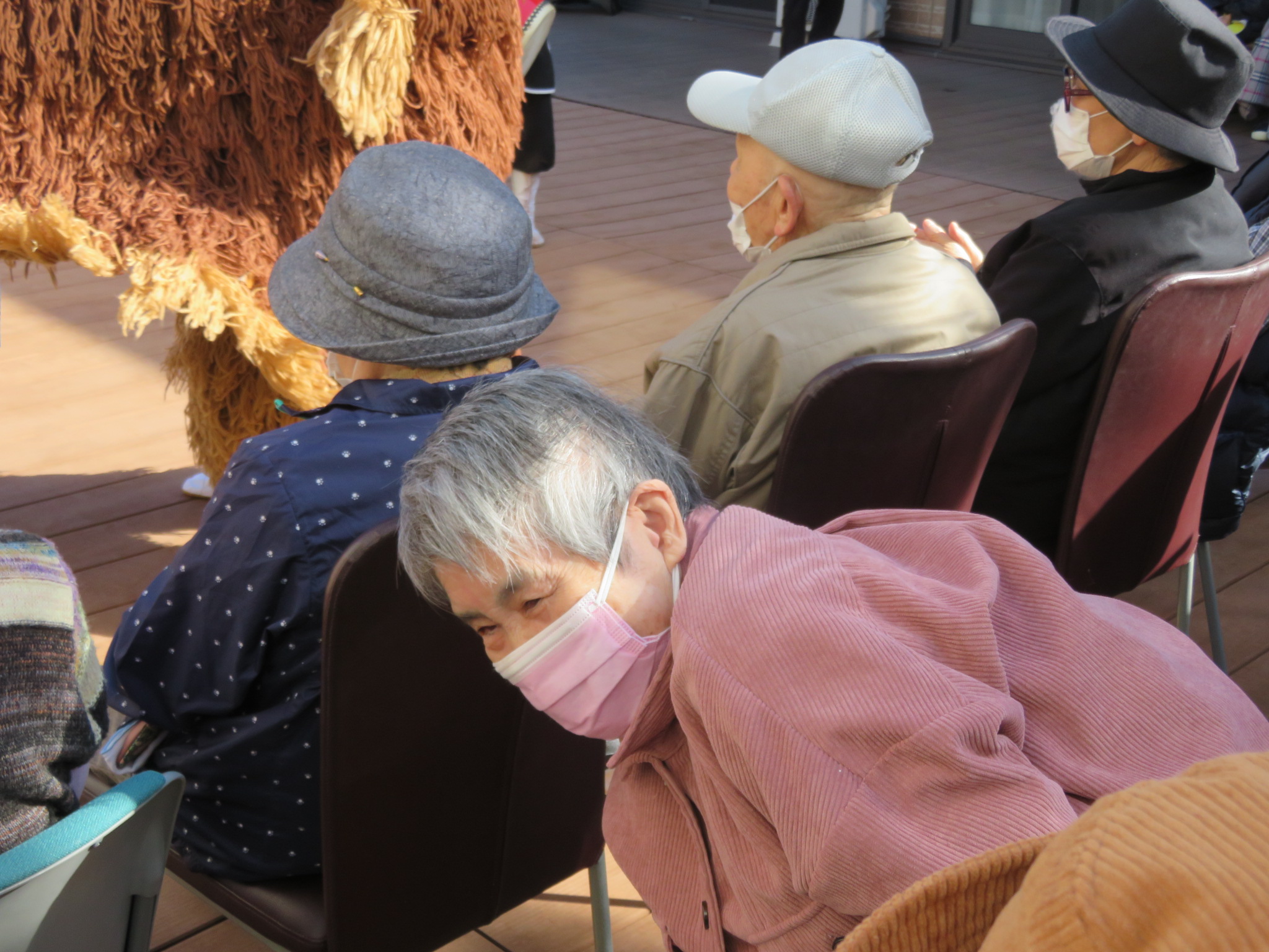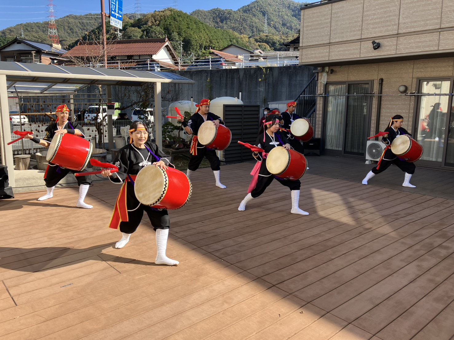 突然の音楽と掛け声に驚かれたご利用者もおられましたが、ご利用者にも法被を着て頂き、一緒に「ワッショイ・ワッショイ」と威勢の良い声と笑顔が広がりました。