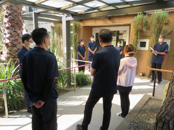 訓練の最後には総評を行い、担当職員からの感想や意見、管理者からの注意点やアドバイスを共有しました。