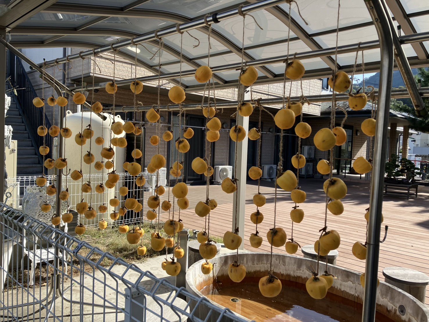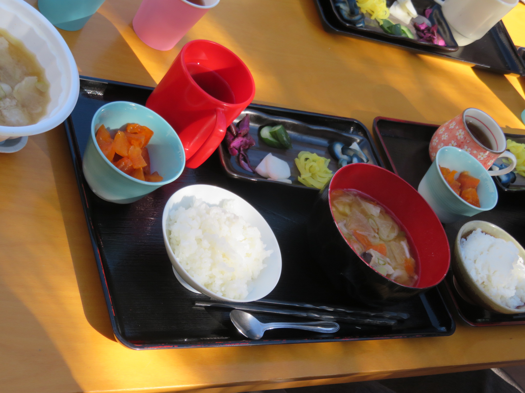 昼食は、さつまいもの豚汁、秋茄子等の漬物、柿等です。