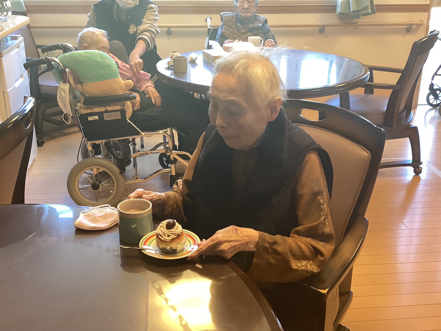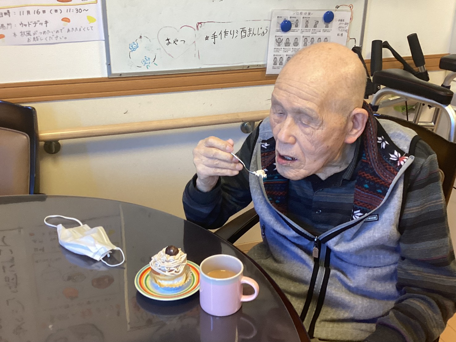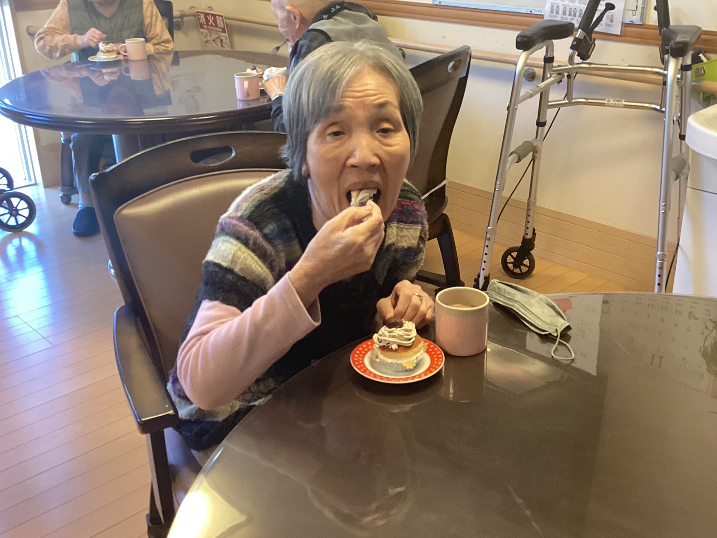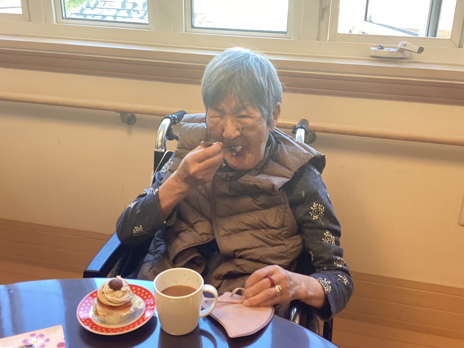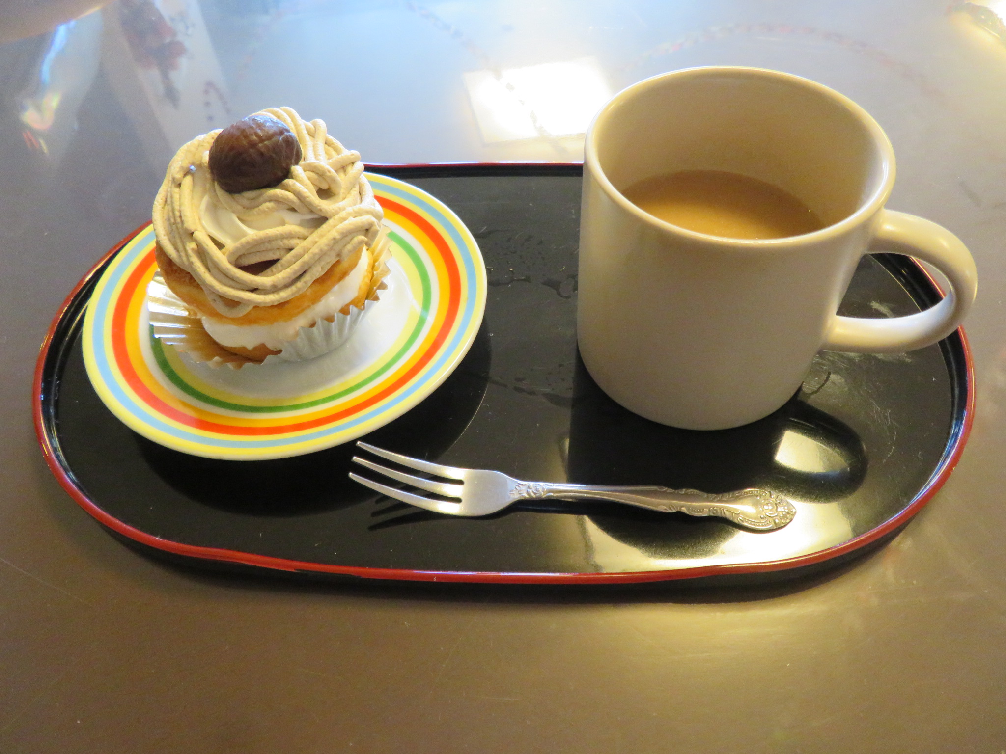 おやつは、モンブランのケーキとドリップコーヒーです。