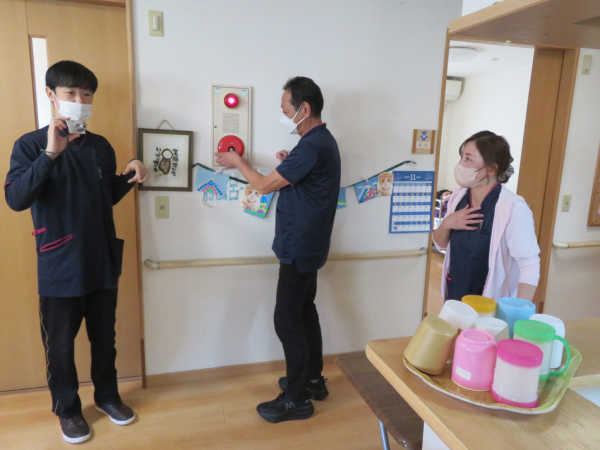 当施設では、年2回の避難訓練を実施しており、ご利用者様の安全に十分配慮しながら、毎回真剣に取り組んでいます。