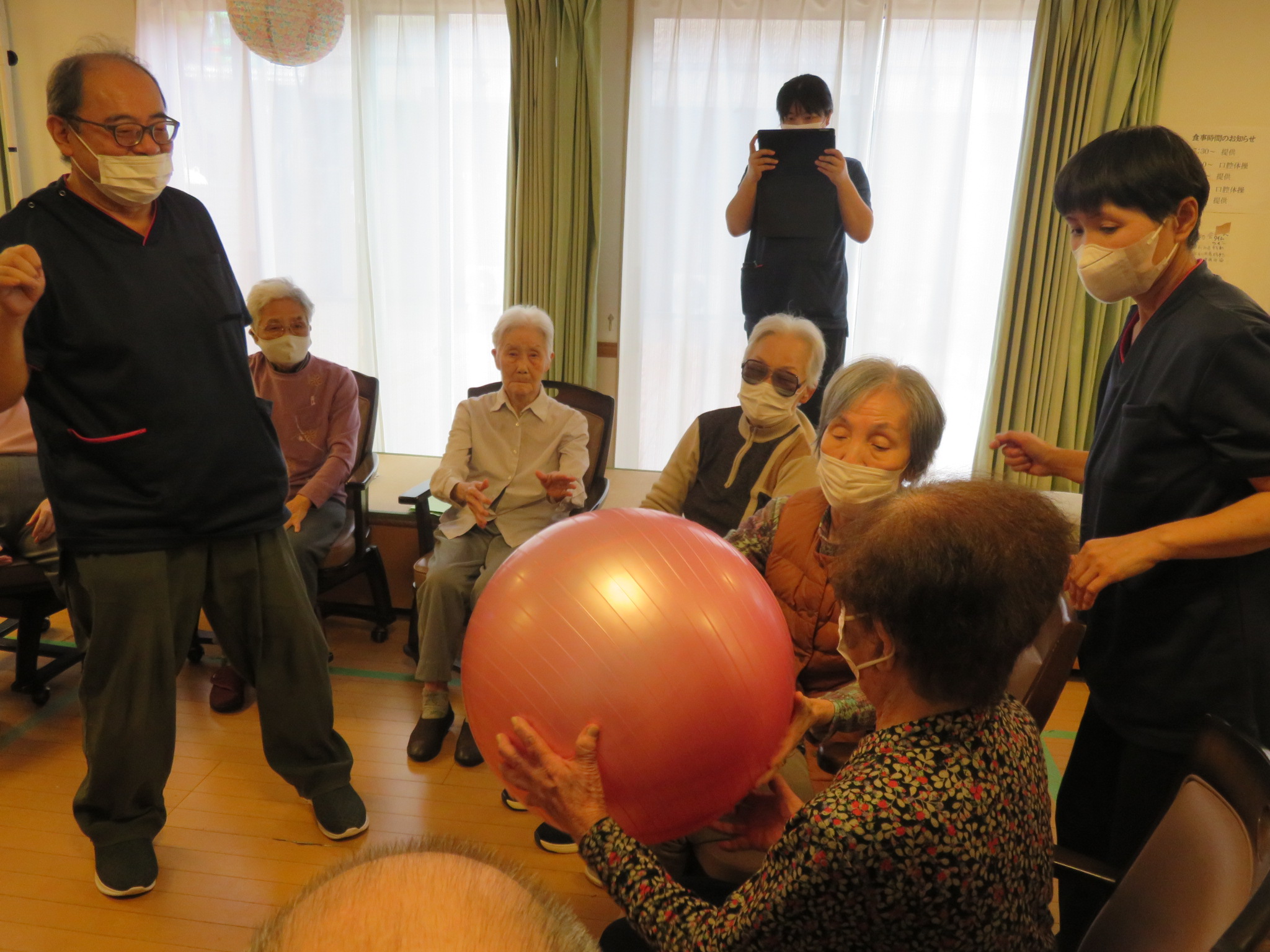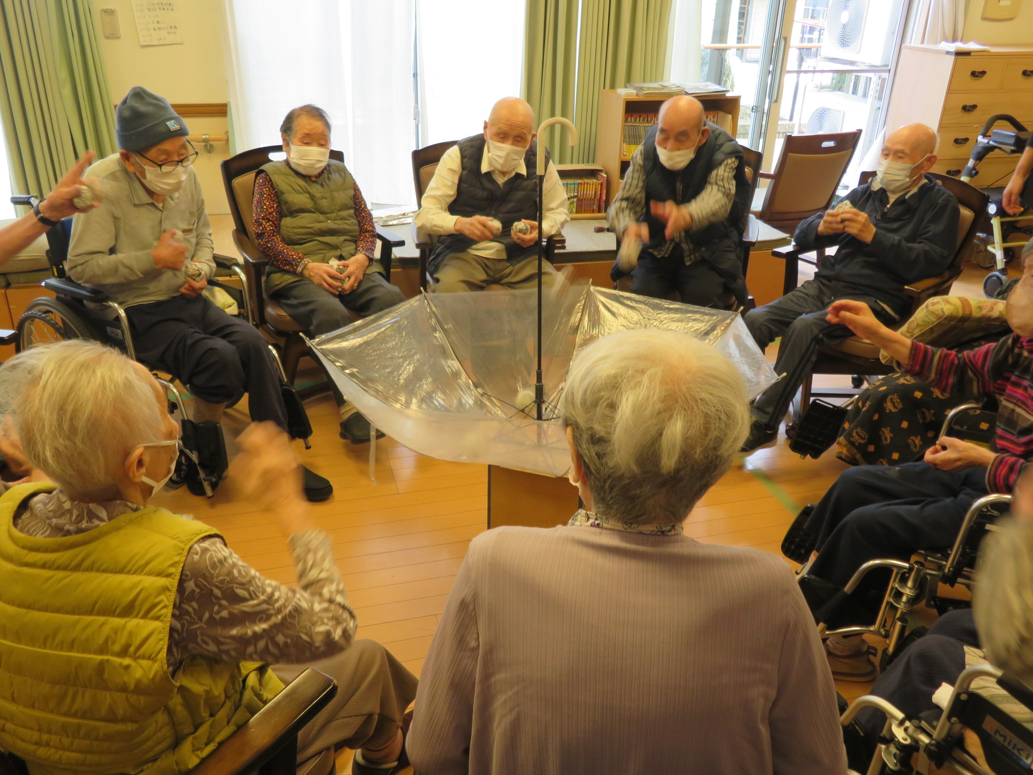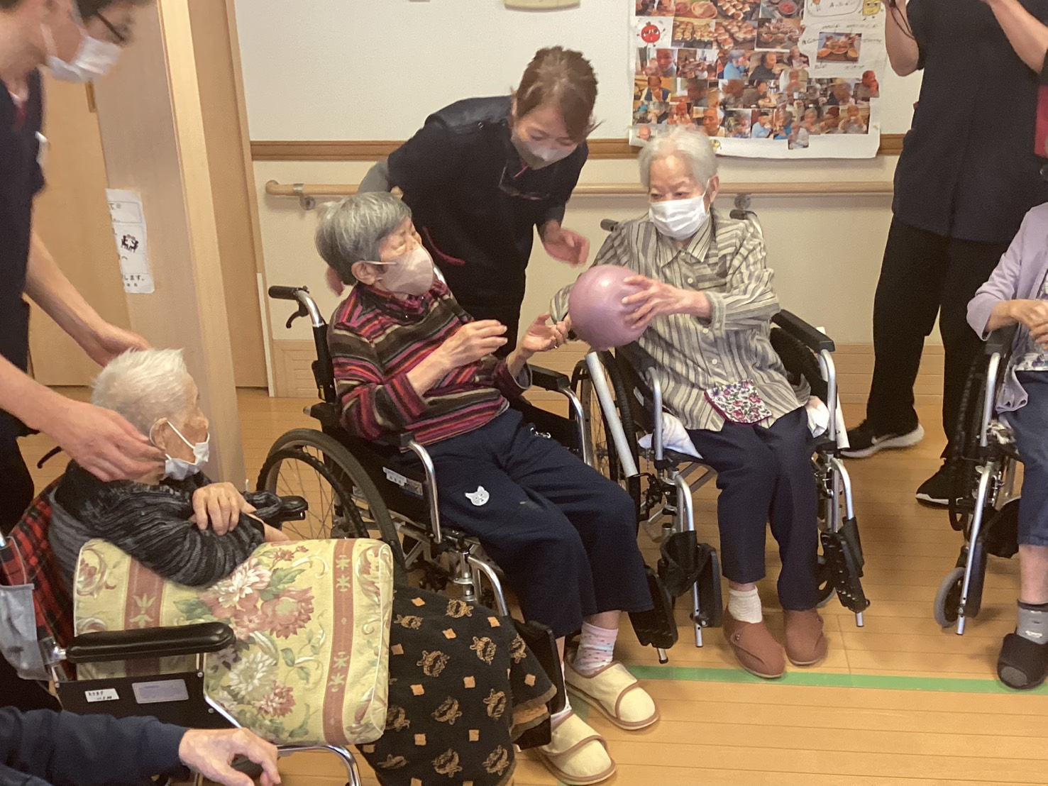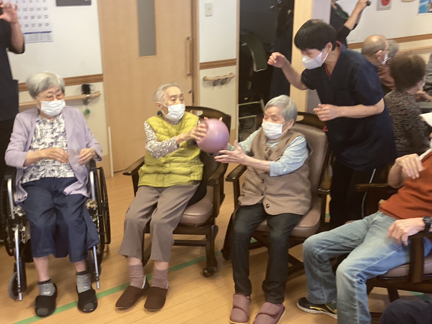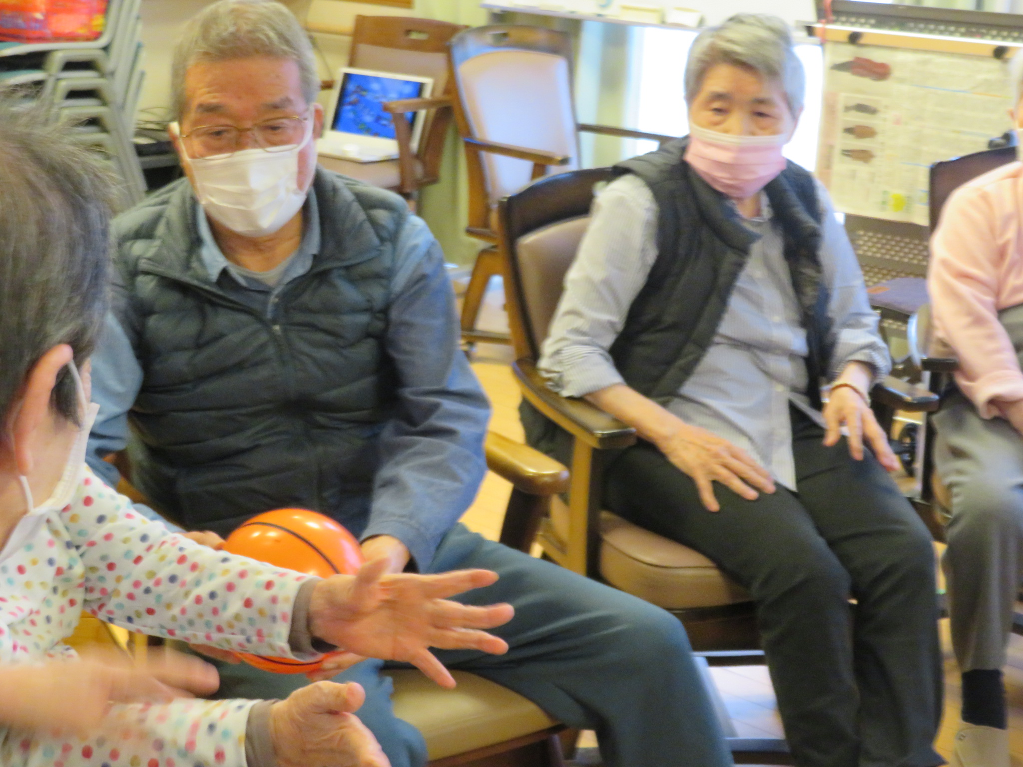 11月11日は「介護の日」です。 湯楽苑では、健康に楽しく過ごして頂きたいとの思いから、本日は運動会を実施しました。 しっかりと体操をしてから、1階チームと2階チームに分かれて対抗戦。 ボール回し、玉入れ、新聞引きを行いました。 好プレーや珍プレーと、白熱した中にも笑いもあり、あっという間に時間が過ぎました。 皆さんにとって、いい日が続きますように。