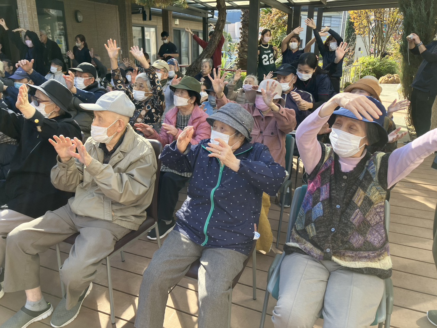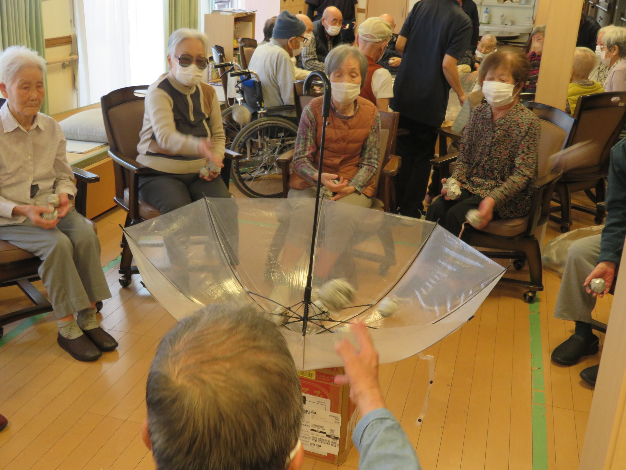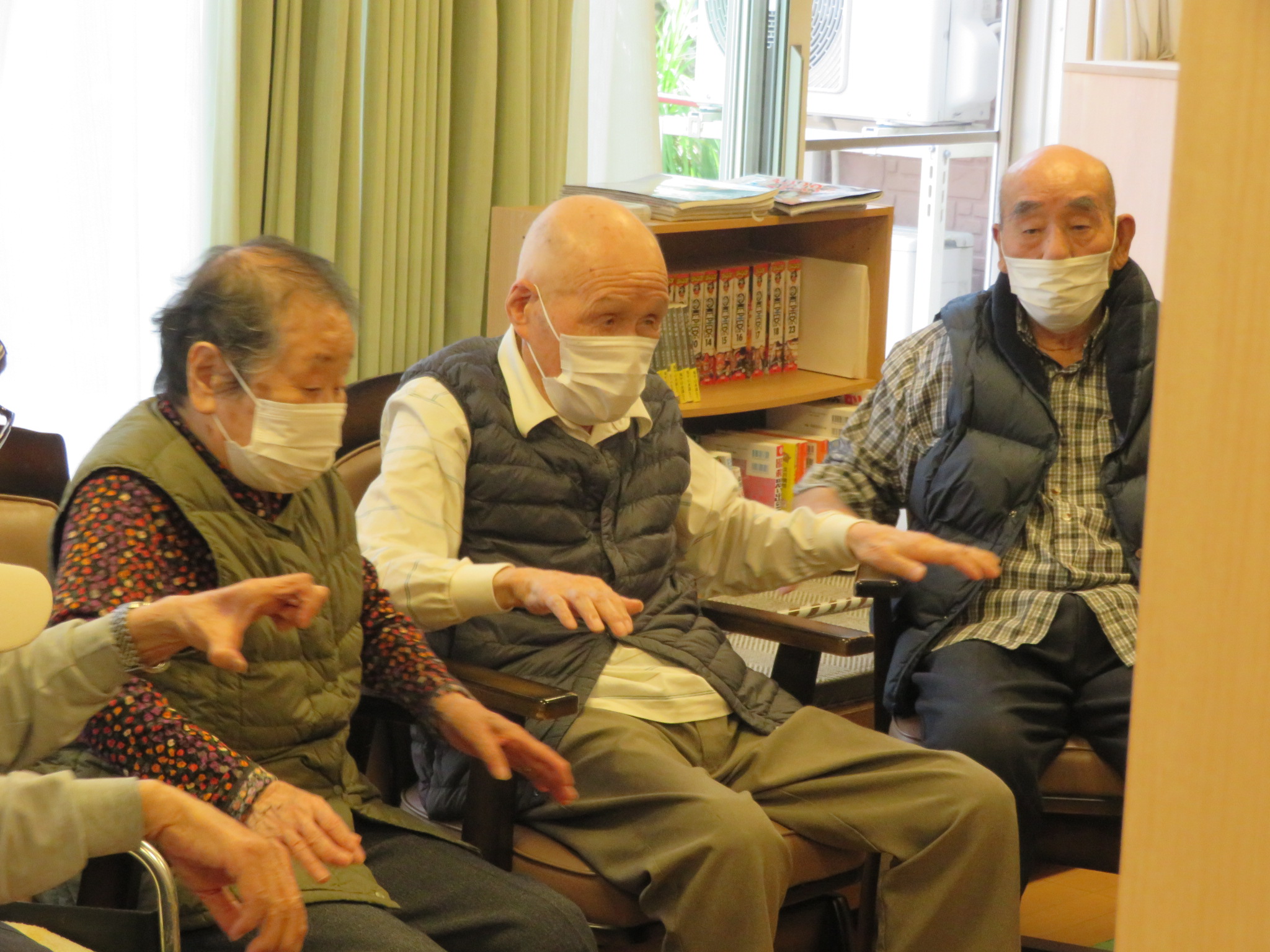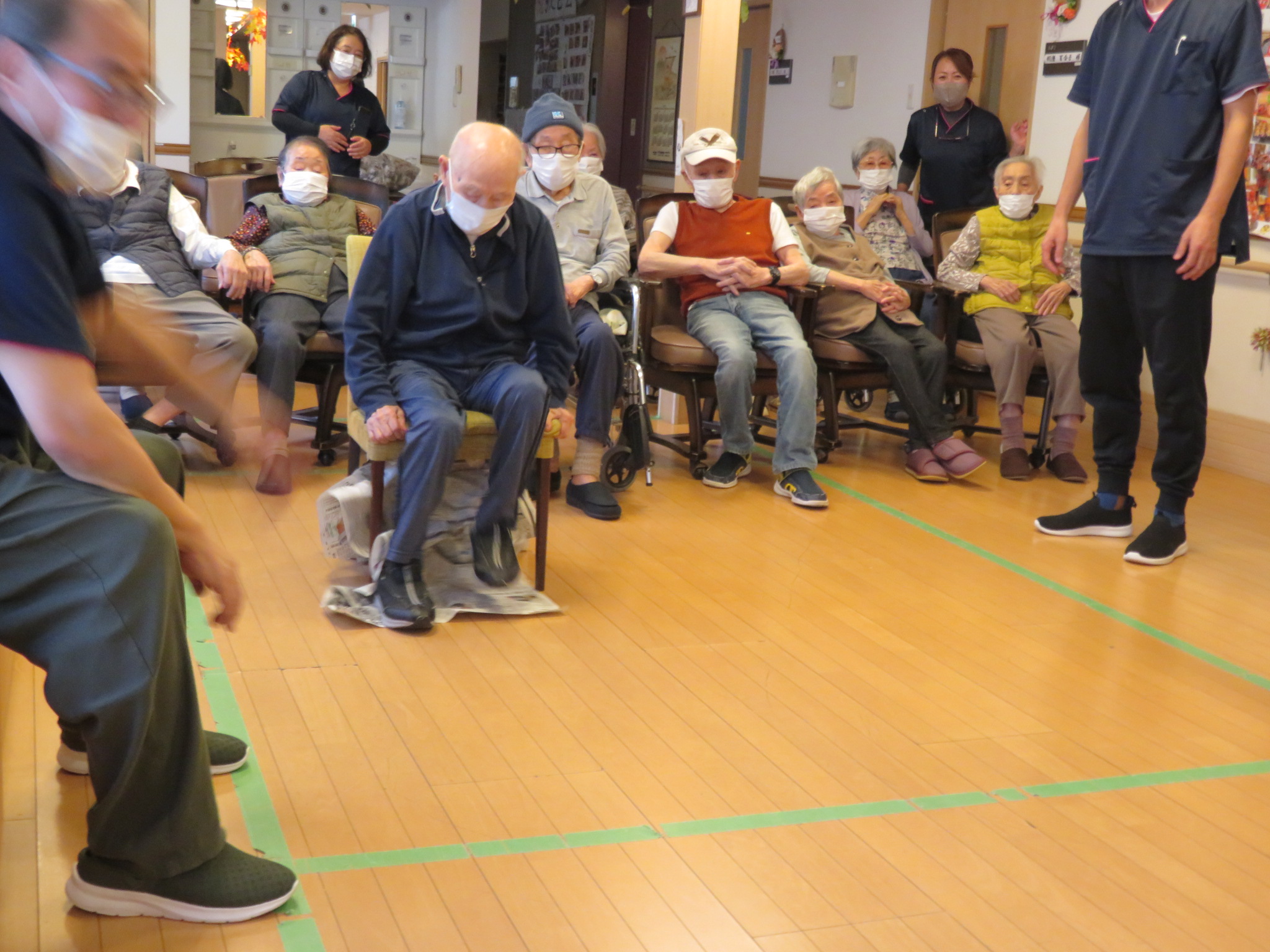 11月11日は「介護の日」です。 湯楽苑では、健康に楽しく過ごして頂きたいとの思いから、本日は運動会を実施しました。 しっかりと体操をしてから、1階チームと2階チームに分かれて対抗戦。 ボール回し、玉入れ、新聞引きを行いました。 好プレーや珍プレーと、白熱した中にも笑いもあり、あっという間に時間が過ぎました。 皆さんにとって、いい日が続きますように。