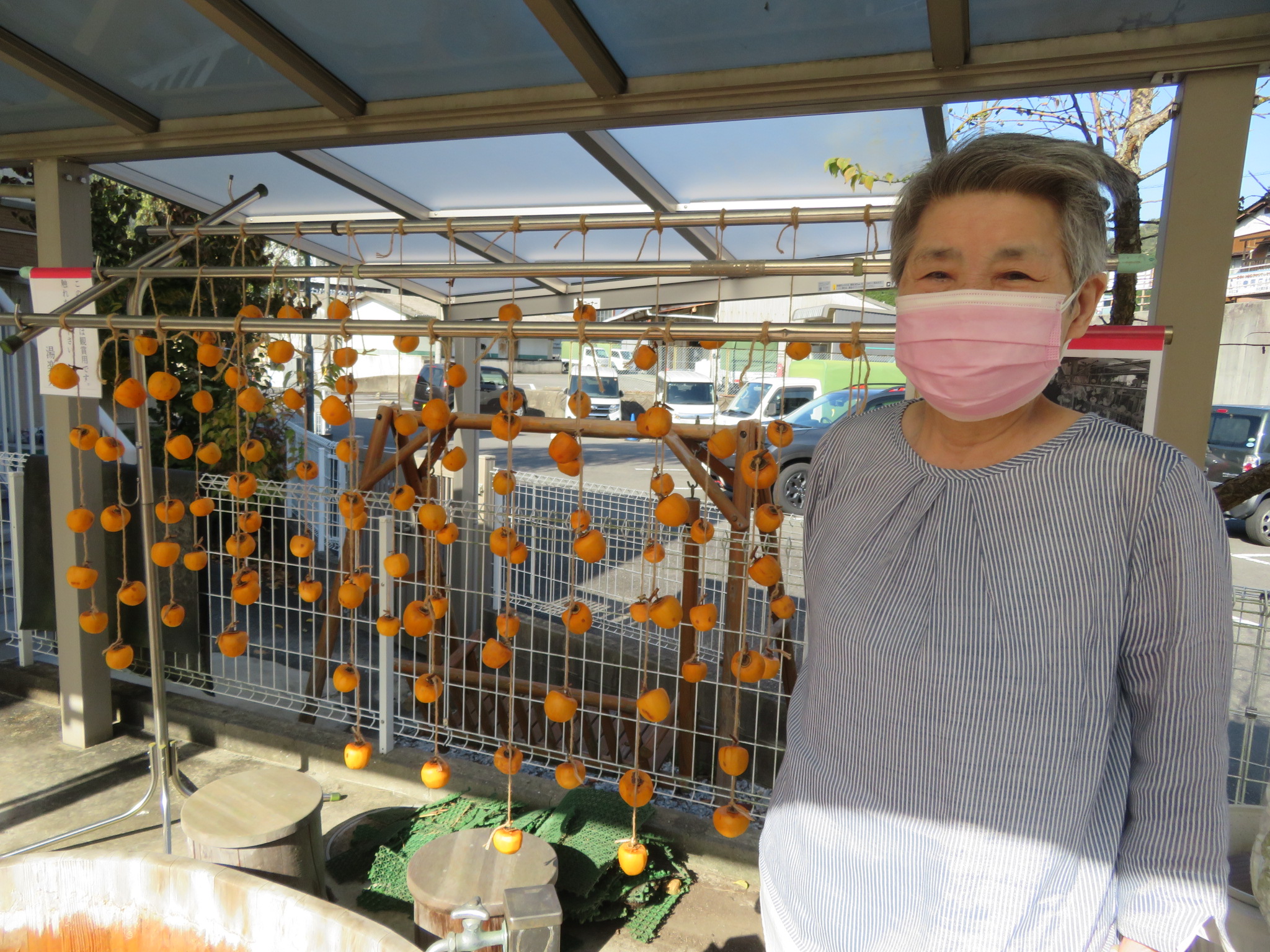 ウッドデッキに吊るした後は、ご利用者と一緒に写真撮影。
