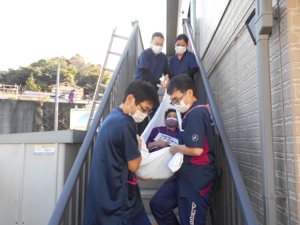 今回もご利用者の皆さまにご協力いただき、職員と一緒に訓練を行いました。