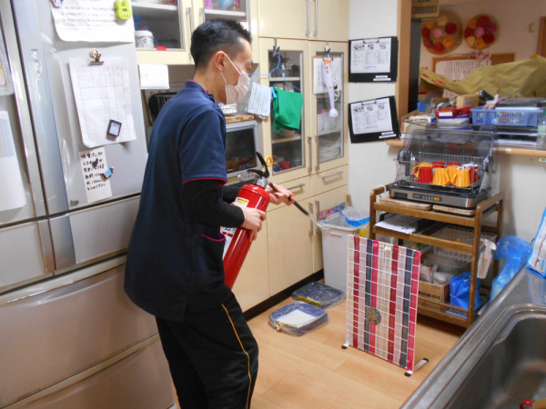 年に2回、隣接事業所「湯楽苑」と合同で消防訓練を実施しています。
