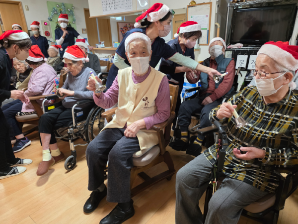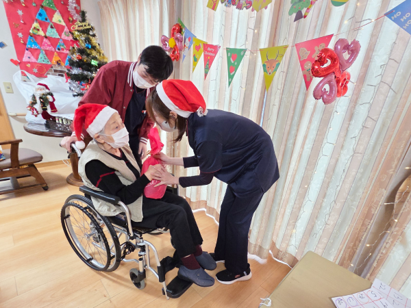 ビンゴ大会を開催しながら、サンタクロースが全てのご利用者へプレゼントを届けてくれました。