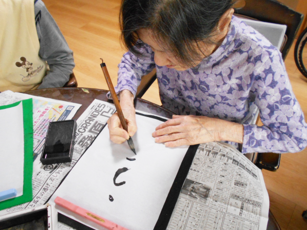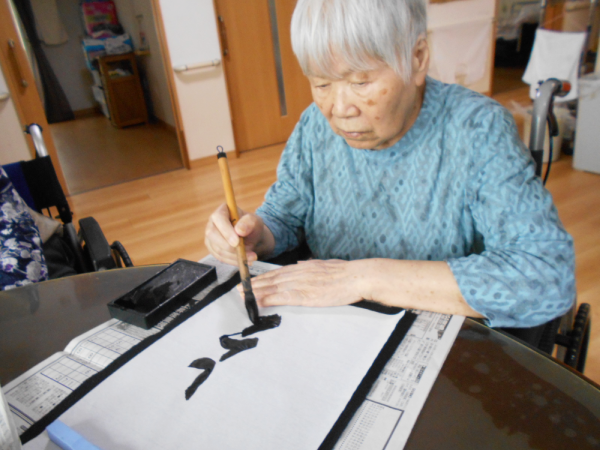 今年の干支は「午」ですね。 楽々苑では、毎年1月2日に書初めを行っています。 ちなみに「書初め」は、平安時代から続く宮中の定例行事で、幸福や健康を祈って行われているそうです(´艸`*) 「午」「馬」「うま」「ウマ」といった干支の文字を基本に、良い午年になるよう願いを込めて書いていただきました。 もちろん、書きたい言葉があれば大歓迎です!! 「上手く書けん」と言われながらも、実は達筆なご利用者が多くおられ、思わず笑顔になりました(笑) 午年の幸福とともに、これからどんな一年になるのか、今から楽しみです。