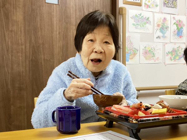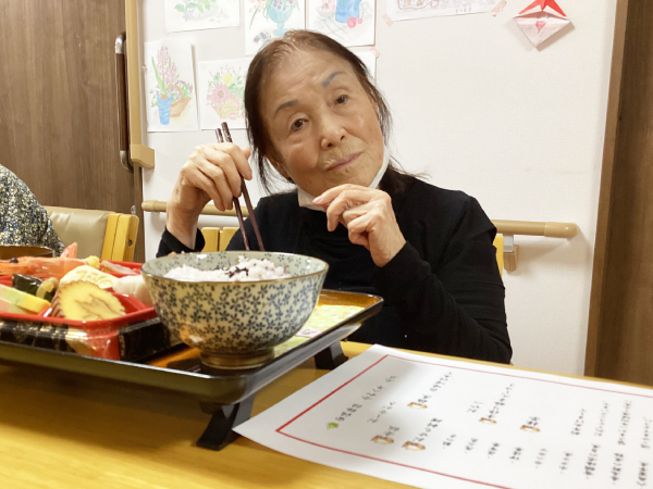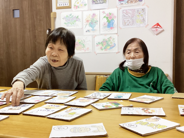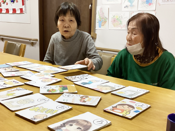 あけましておめでとうございます グループホーム安佐物語ご利用者様の、お正月のご様子をお届けします。 第一弾は、おせち料理とかるたです(^_-)-☆ 色とりどりのおせち料理でお正月の雰囲気を楽しまれ、 食後はかるた取りに参加され、にぎやかな時間となりました。