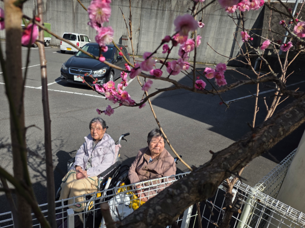 まだ満開ではなく、蕾が多い時期ですが、気温が暖かいうちにご利用者の皆様に楽しんでいただきました。