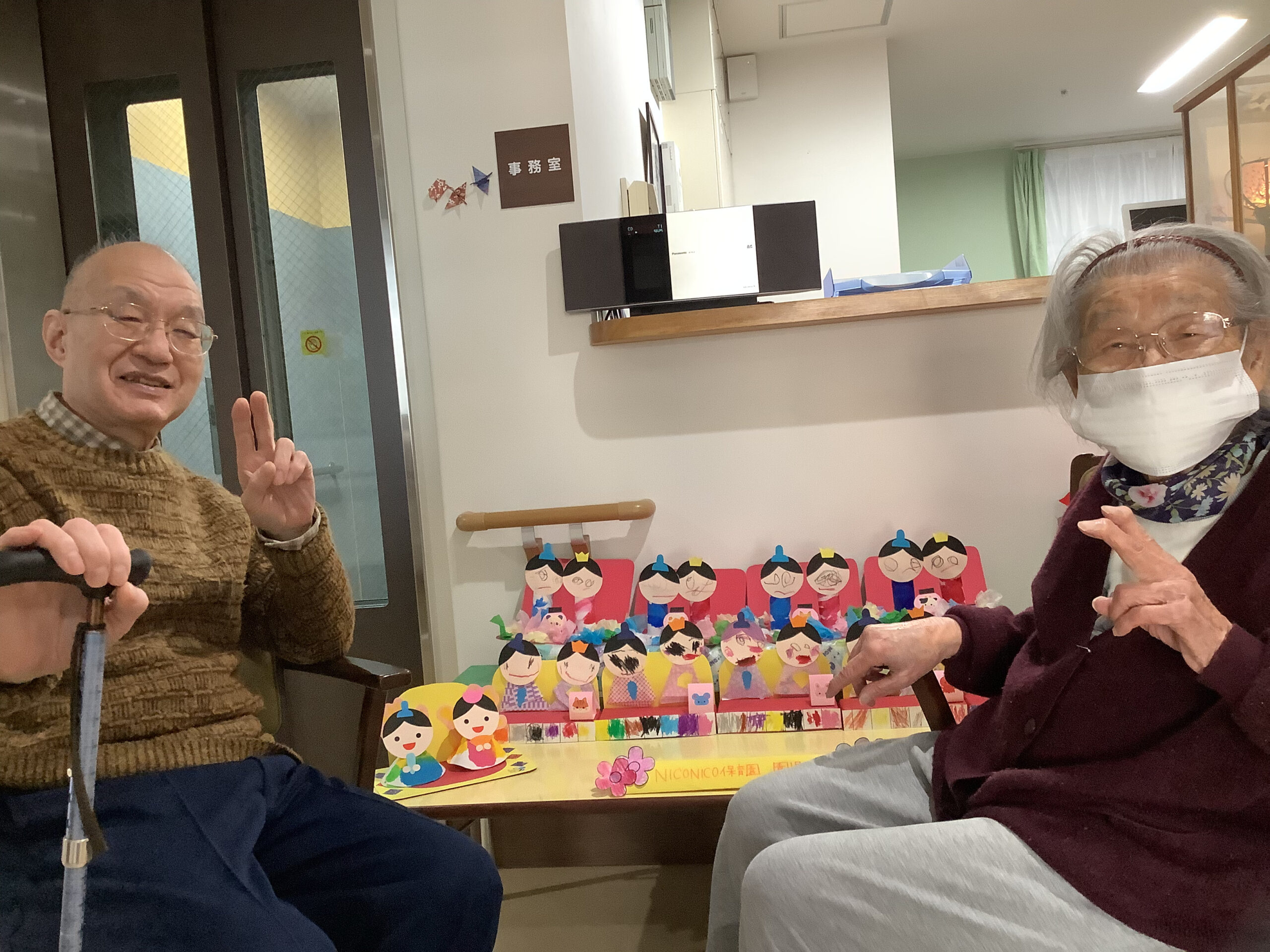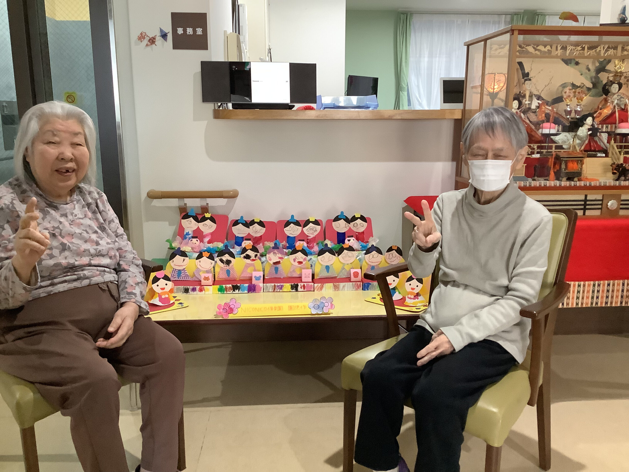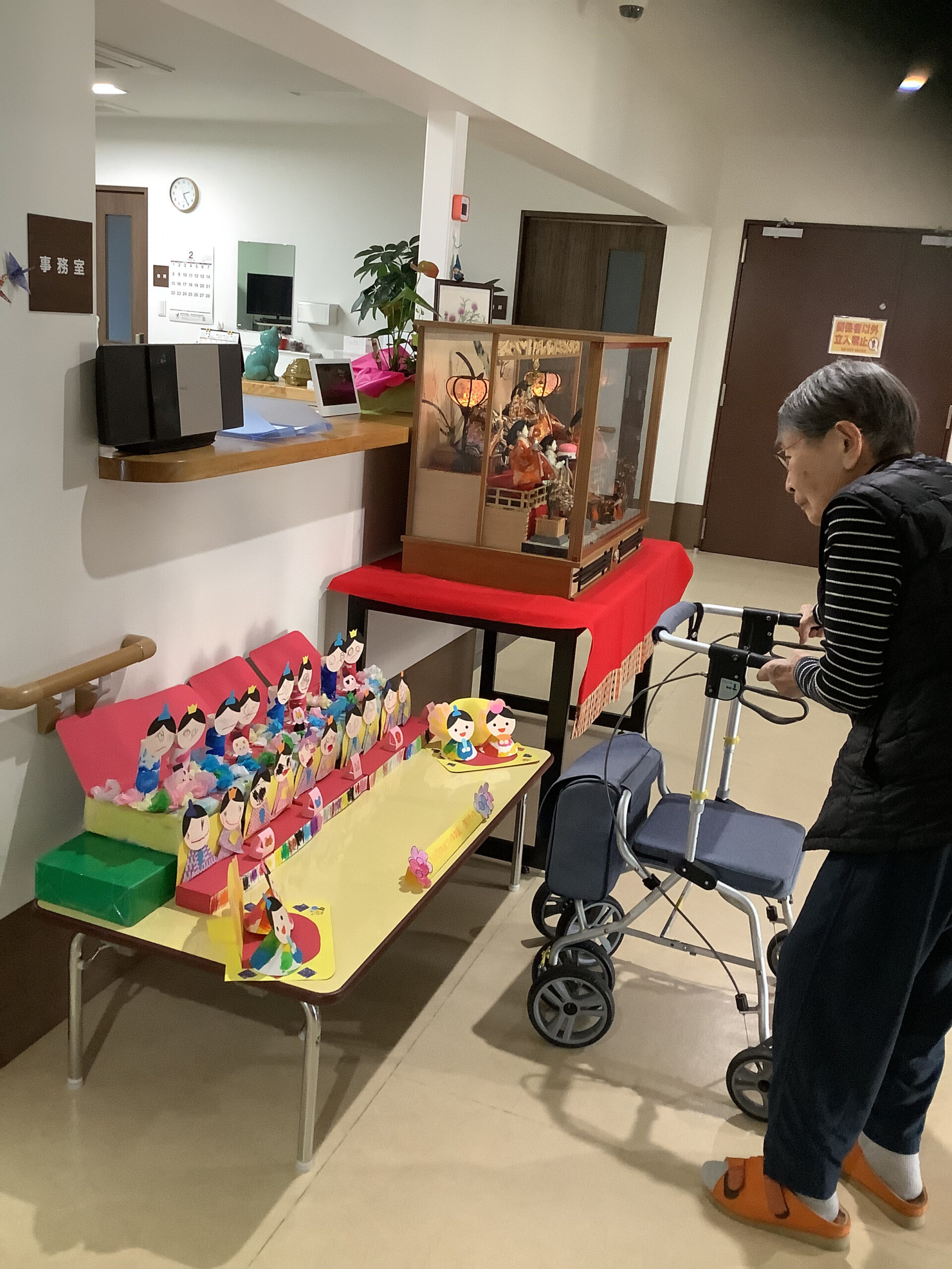 2月の下旬になると令和の森の玄関にひな人形が飾られます。 そこへ今年は隣接するNICONICO保育園の園児さんが作ったひな人形も飾られました。 園児さんたちに「見に来てね」と誘っていただいた皆様は早速見に行かれていました(*^-^*) 園児さんたちの作った可愛らしいひな人形を目を細めて見入っていらっしゃいました。