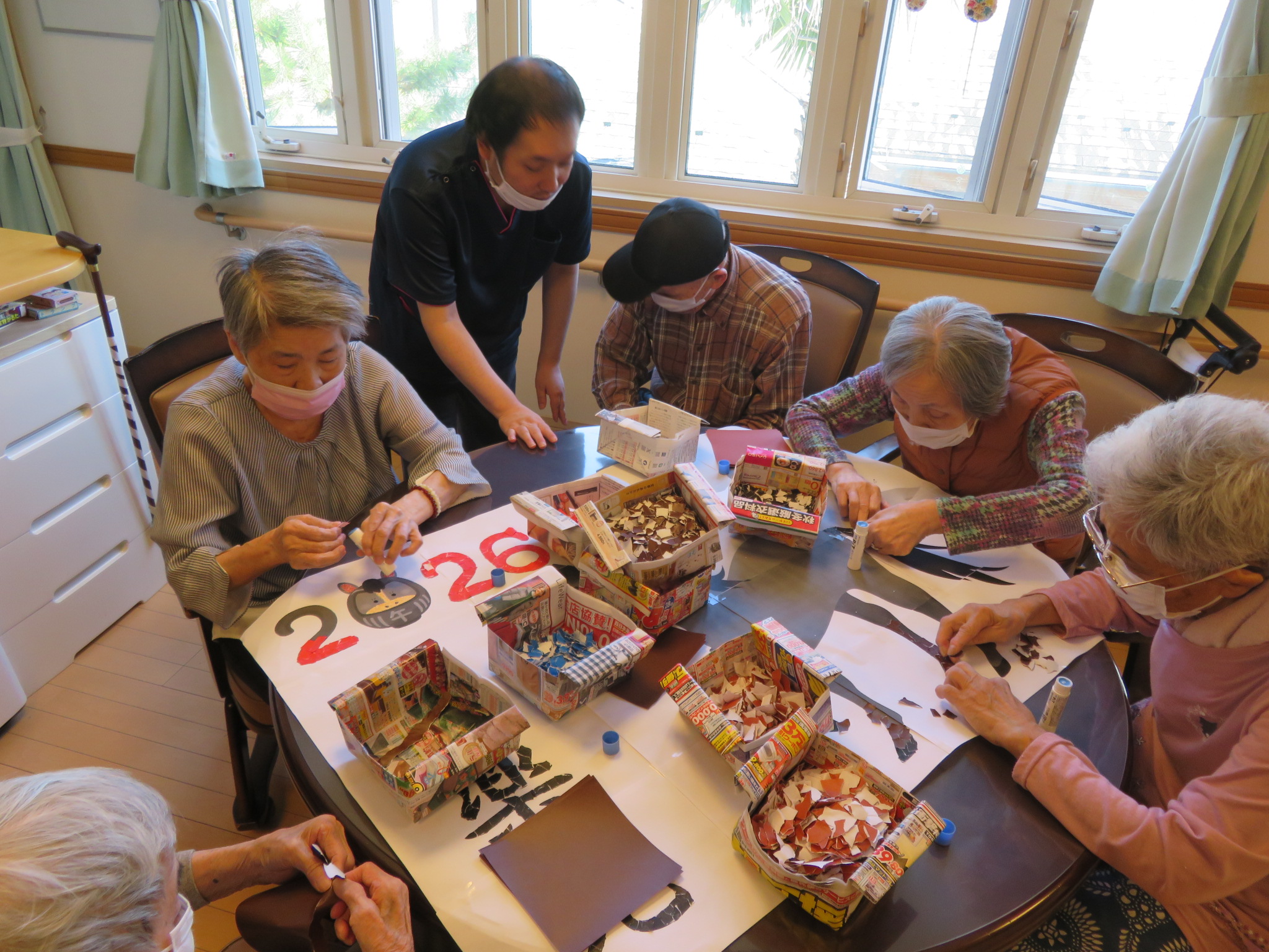 来年に向けて、恒例である干支の貼り絵をご利用者と一緒に作成しました。