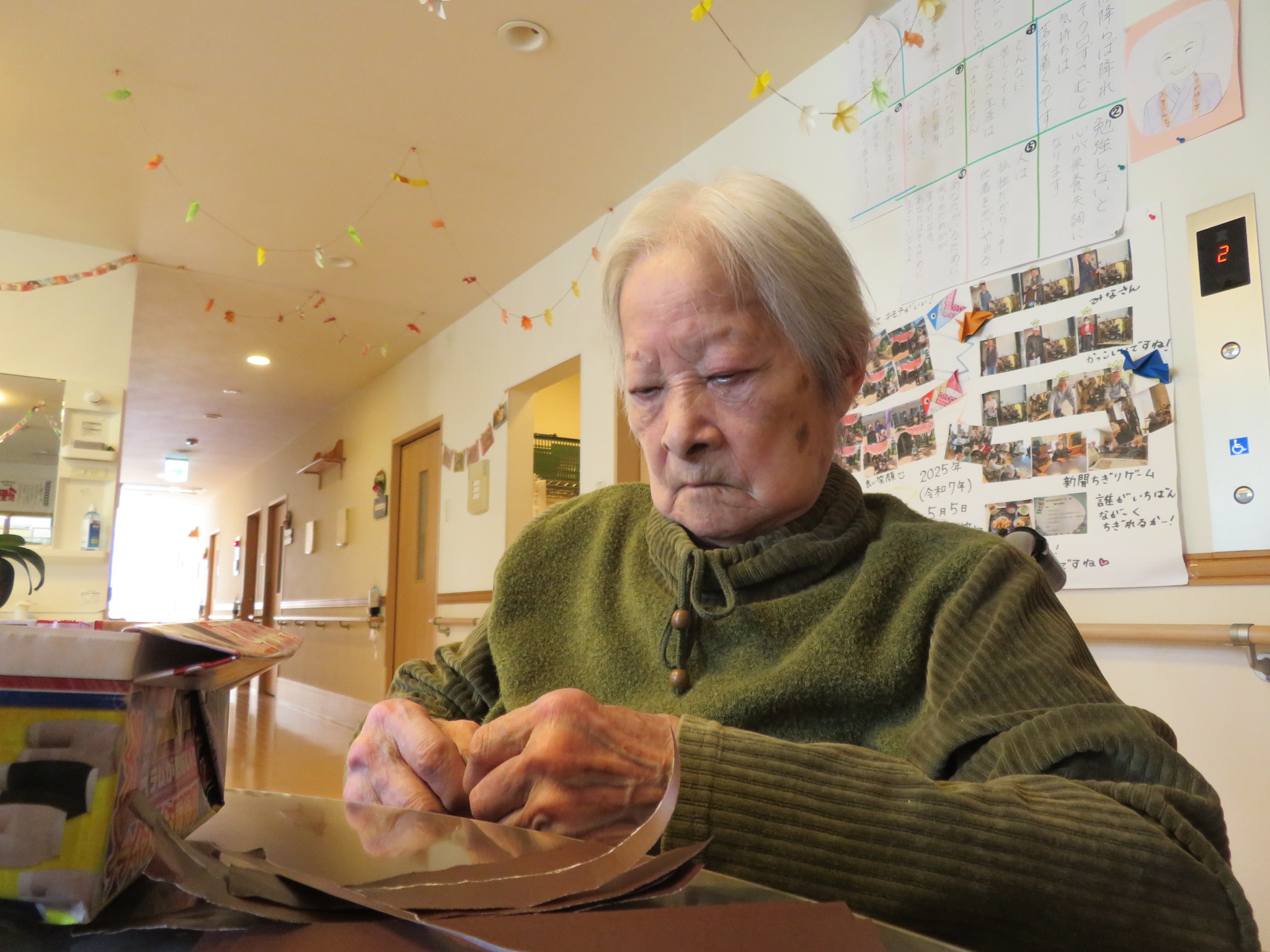 湯楽苑でクリスマスに向けて、施設内の飾り付けをご利用者と一緒に行いました。